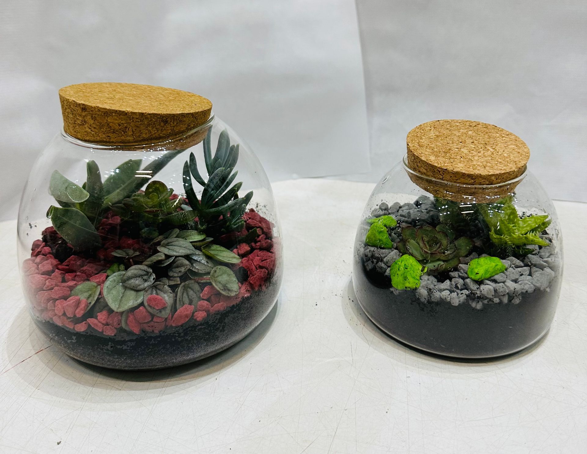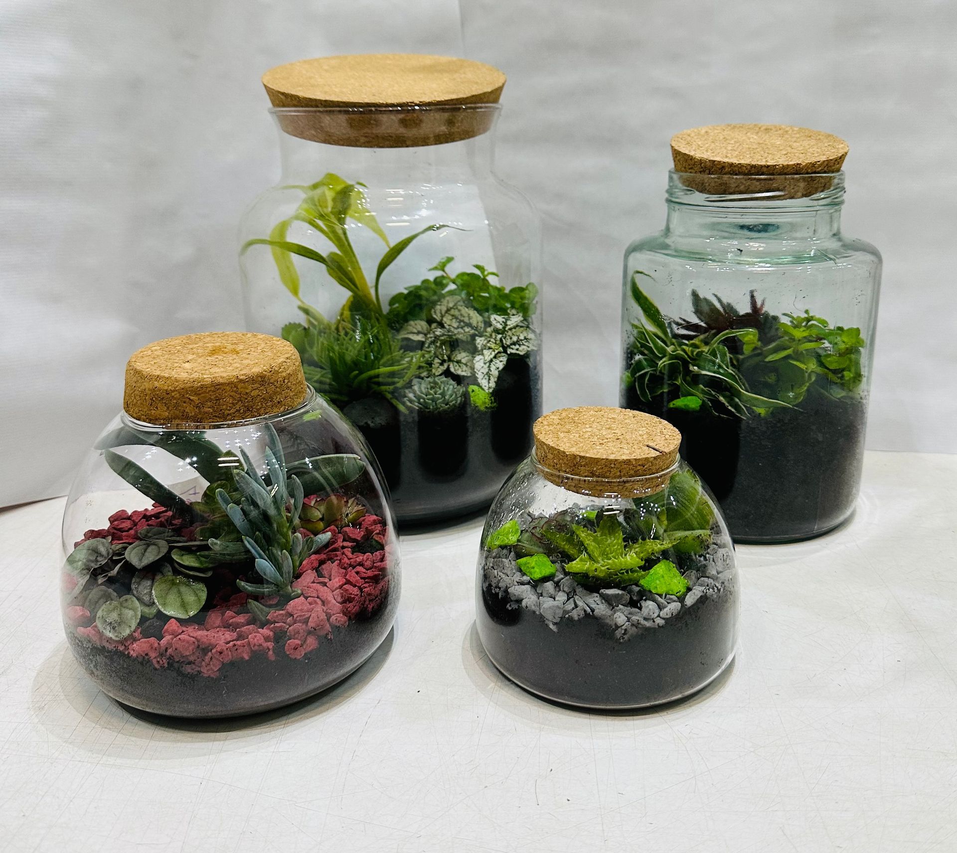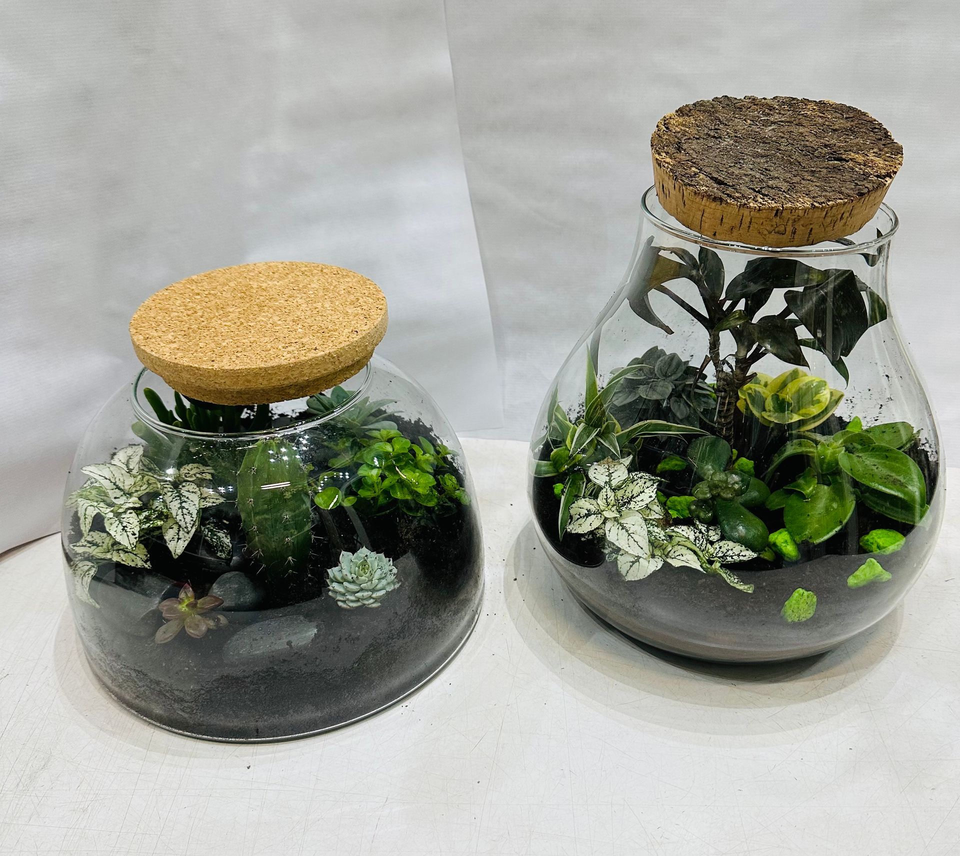 Nous réalisons la conception de terrarium, des compositions à offrir qui demandent peu d'entretien. Ces décorations embellissent votre intérieur, les plantes sont choisies pour leurs particularités et sont plantées dans ces bulles de verres qui leur permettent de vivre en autonomie, demandant peu d'eau.